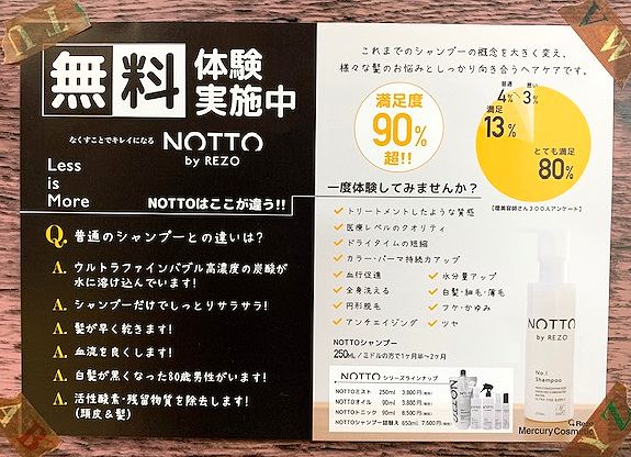 NOTTO無料体験実施中! Category:ヘアケア用品 Date:2019年12月24日 以前よりご紹介し大人気でお客様の評価も上々の『NOTTOシャンプー』 発売より1年が経過しましたが、すでにご使用され“良さ”や“違い”を体験していただけている方もいらっしゃいますが、まだご存じない方、本当に良いのか!?と疑問な方、使ってはみたいけど踏み出せずにいる方・・・様々ではないかと思います。 正直、『このシャンプーすごくイイんですよ!』なんて言われても… どれだけ良いのか分からないし、お店では自分自身で手に取って洗うわけじゃないから説明だけされてもねぇ、お高い物だから勇気がいるし慎重になるよねって感覚、よ~く分かります! なので「じゃあ使ってみるよ」なんて即決される方は少ないですよね~ でも!! 実際に説明だけでなく使用してシャンプーさせてもらうとどうでしょう? 「これすごいね!使ってみるよ!」と言ってもらえる方が多数なのです。 自分で洗う訳じゃないのに?何が分かるの?って思われそうですが・・・ 端的に言ってすぐに分かる(体感できる)こともあるんですよ! ・泡がとても細かいので繊細な洗い心地♪ ・爽やかでリラックスできる香り♪ ・コンディショナー・トリートメント不要♪ ・まるでトリートメントしたような指通りとツヤのある仕上がり♪ ・乾燥毛・ダメージ毛でもサラサラ&しっとりした髪に♪ 上記のことはシャンプー時、シャンプー後にすぐ体感し分かっていただけると思います! ご興味のない方に推し推しでセールスは致しません。 ですが、体験していただければ、これまでのシャンプーの概念を覆すほどの仕上がりと、様々な髪のお悩みをしっかり改善へと導ける力を持ったシャンプーだと思いますので知っていただきたいのです。 そして気に入ってもらえたら、ご購入くださいませ(^-^)ガッカリはさせませんよ! 【無料体験】実施中ですので「NOTTOシャンプーっての良いらしいね!?使ってみてよ」なんてお気軽にお申し出くださいね~ 使用者の方へのアンケートでは満足度90%を超える高評価のシャンプーですので、その力・洗い心地をこの機会にぜひご体感くださいね(^▽^)/ [0回]PR